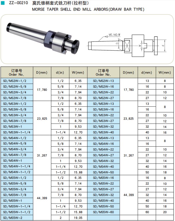 莫氏錐柄套式銑刀桿