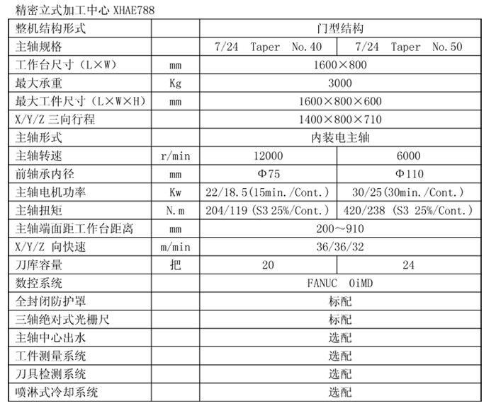 XHAE788精密立式加工中心,適用于航空、航天、模具、箱體、機(jī)械等行業(yè)黑色金屬、鋁合金等各種零件的粗、精加工。機(jī)床配置FANUC 0iMD高性能數(shù)控系統(tǒng)。