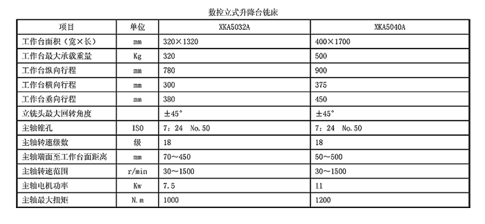 XKA50系列數(shù)控立式升降臺銑床是一種使用范圍很廣的銑床,可配備FANUC 0i-MD、SIEMENS 828D、華中818B和廣數(shù)983M數(shù)控系統(tǒng),可以完成直線、斜線、曲線輪廓等銑削加工;可以組成各種往復(fù)循環(huán)和框式循環(huán)還可以銑削具有復(fù)雜曲面輪廓的零件,如模具、螺旋槽、葉片、凸輪、樣板等;適用于機械制造行業(yè)的各類部門,也適用于軍工部門。并可根據(jù)用戶要求提供第四坐標(biāo),從而實現(xiàn)四軸四聯(lián)動功能,可以實現(xiàn)在圓柱面、圓錐面等上面加工各種曲線、曲面。 結(jié)構(gòu)特點: 機床主傳動為交流電機驅(qū)動,18級齒輪變速;三軸進給系統(tǒng)為交流伺服電機驅(qū)動;主軸錐孔為(ISO)No.50錐孔,可安裝標(biāo)準(zhǔn)的銑刀或銑夾頭;主軸的軸向位置可調(diào)整,連同套筒一起作軸向伸出;主軸也可以連同銑頭主體一起,在左右各45°范圍內(nèi)調(diào)整成傾斜位置;銑頭的上方裝有半自動的裝卸刀機構(gòu),通過兩個按鈕分別控制裝刀和卸刀;機床采用側(cè)掛式電柜和吊掛式操縱站,機電一體,整體裝運,安裝方便,集中操縱但又能多位置操作。