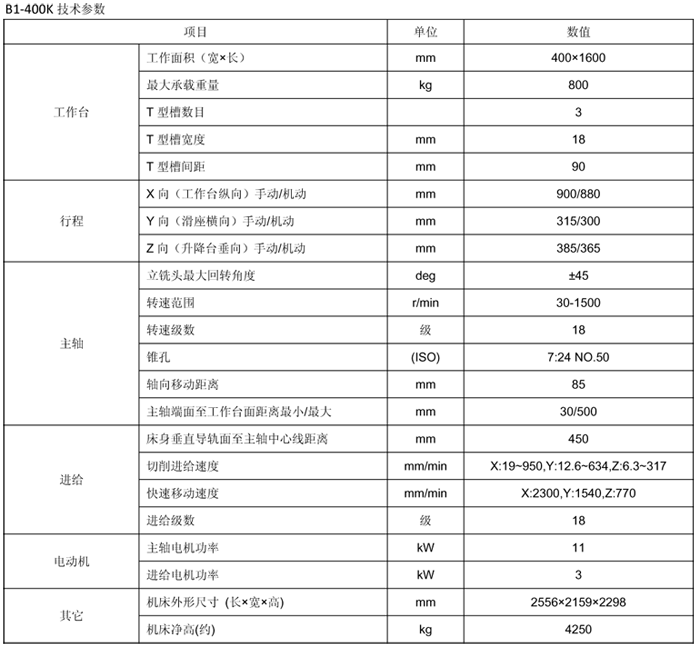 B1-400K立式升降臺(tái)銑床